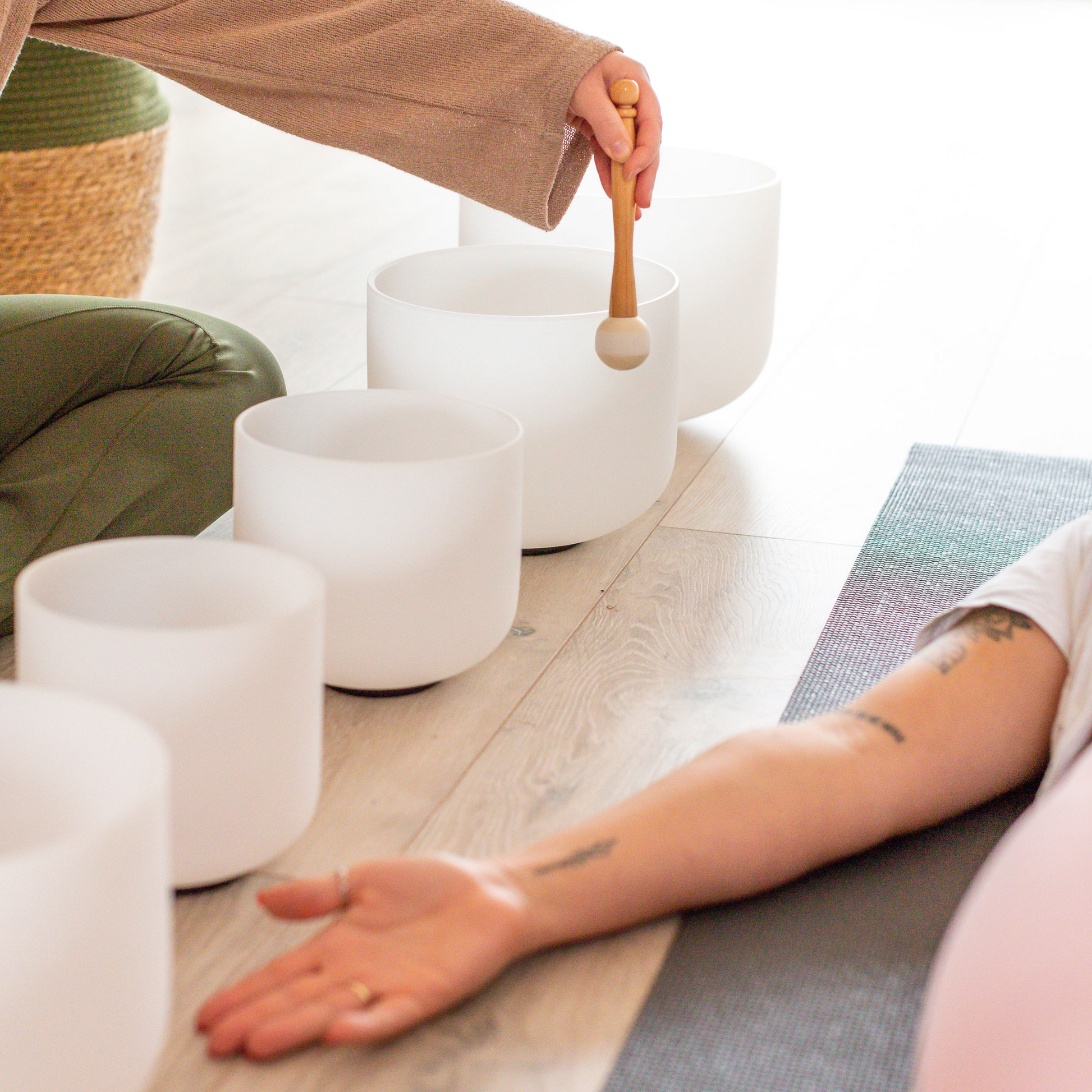 Surrender into the rhythm of your breath, allowing it to guide you into deep relaxation, before being immersed in the ethereal vibrations of crystal sound bowls. As you drift in this meditative soundscape, our massage therapist, Maisy, will offer gentle, soothing touch through a mini massage on your head, hands, and feet.